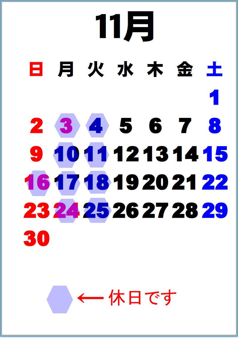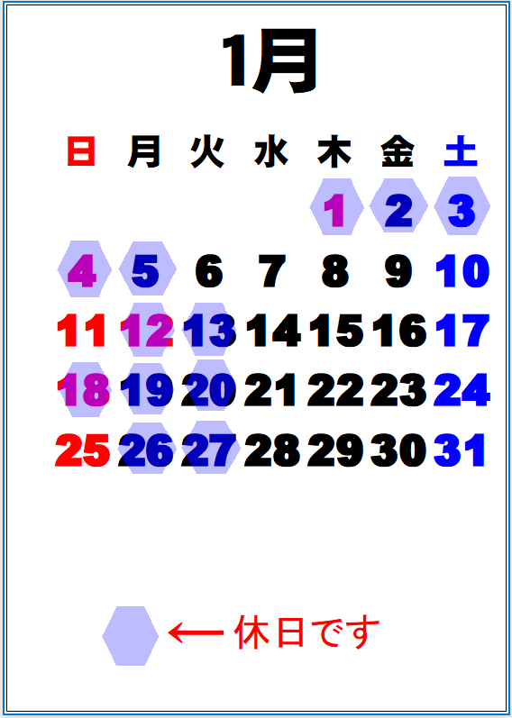 12月の休日は非常に変則的ですのがご確認ください